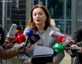 VOKSHI WINS IN COURT - MP Albana Vokshi speaking for journalists after she exiting the Special Court of First Instance for Corruption and Organized Crime, where she won against the charges raised by the Minister of Education Evis Kushi. Vokshi had attacked Minister Kushi, after the high school graduation exam theses were leaked before the actual exams. The minister considered the attacks as defamation, raising a case against Vokshi.