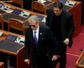 The chairman of the Democratic Party, Sali Berisha and Edi Paloka during a parliamentary session, in which one normative act regarding PFIZER vaccines was approved and the two new MPs, Petrit Doda and Orjela Nebiaj, were sworn in. The latter replaced Alfred Rushaj and Grida Duma, who gave up from their mandate.