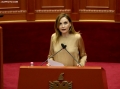 MP Jorida Tabaku speaking during a parliamentary session, in which one normative act regarding PFIZER vaccines was approved and the two new MPs, Petrit Doda and Orjela Nebiaj, were sworn in. The latter replaced Alfred Rushaj and Grida Duma, who gave up from their mandate.
