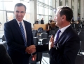 Member of the High Court, Sokol Sadushi and The Prosecutor General, Olsian Cela during an activity of the High Judicial Council with the theme Towards judicial excellence. The meeting focused on the improvement of efficiency in the Supreme Court of Albania.