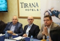 CONFERENCE AGAINST MONEY LAUNDERING - The Executive Director of the Institute for Democracy and Mediation, Sotiraq Hroni, the Chairman of the American Chamber of Commerce, Enio Jaco and the moderator of the meeting, Gjergji Vurmo, speaking during a national conference on the topic Prevention of Money Laundering in Albania, held in the Abret hall in Tirana International Hotel. During the conference, participants talked about the escalation of efforts to include non-state actors in politics and the response to money laundering and the need to create a broad coalition of actors.