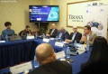 The Executive Director of the Institute for Democracy and Mediation, Sotiraq Hroni, the Chairman of the American Chamber of Commerce, Enio Jaco and the moderator of the meeting, Gjergji Vurmo, speaking during a national conference on the topic Prevention of Money Laundering in Albania, held in the Abret hall in Tirana International Hotel. During the conference, participants talked about the escalation of efforts to include non-state actors in politics and the response to money laundering and the need to create a broad coalition of actors.