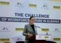 Gent Gazheli during a conference regarding the future of the workforce and the departure of her from Albania. The conference was organized by Monitor Magazine and the American Chamber of Commerce.