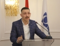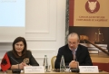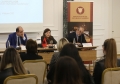 Head of the Constitutional Court Vitore Tusha during a meeting held in the framework of a competition organized by the OSCE in the field of law. The competition held had as its subject the drafting of an individual constitutional complaint and was held in several universities in Albania.
