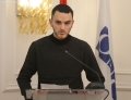 The winner of the competition, Ardit Sulaj speaking during a meeting held in the framework of a competition organized by OSCE in the field of law. The competition held had as its subject the drafting of an individual constitutional complaint and was held in several universities in Albania.