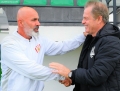 The coach of Egnatia, Shpetim Duro and the coach of Bylis, Arian Bellai before the football match, Egnatia of Rrogozhina vs Bylis of Ballsh, 0-1, valid for the Albanian Super League, played at the Arena Egnatia stadium in Rrogozhina.
