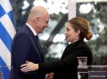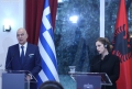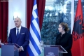 The Greek Foreign Minister, Nikos Dendias, and the Minister for Europe and Foreign Affairs, Olta Xhacka after a joint press conference. During the conference, the ministers spoke about the issue of the sea, the intensification of relations between the two countries, the energy crisis and the war in Ukraine.
