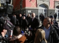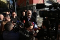 RAMA SPEAKS TO THE MEDIA AFTER THE THEATER CEREMONY - Prime Minister Edi Rama, surrounded by police forces speaking to the media after the presentation ceremony for the project of the new national theater, which was also attended by the mayor of Tirana, Erion Veliaj. The new theater, designed by the Danish architect Bjarke Ingels, will be built in the place where the old theater stood. The destruction of the theater and the project have met with protests and resistance from artists and citizens.