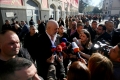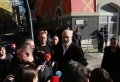 Prime Minister Edi Rama, surrounded by police forces, after the presentation ceremony for the project of the new national theater, which was also attended by the mayor of Tirana, Erion Veliaj. The new theater, designed by the Danish architect Bjarke Ingels, will be built in the place where the old theater stood. The destruction of the theater and the project have met with protests and resistance from artists and citizens.