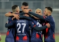 Vllaznia players celebrate scoring a goal during the football match Vllaznia of Shkodra vs Teuta of Durres, 4-0, valid for the Albanian Super League, played at the Loro Borici stadium in Shkodra.
