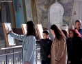 Orthodox believers touch the icons in the premises of the cathedral Resurrection of Christ in Tirana on the occasion of Christmas 2022.