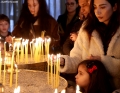 Orthodox believers light candles in the premises of the cathedral Resurrection of Christ in Tirana on the occasion of Christmas 2022.