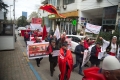 Citizens with banners protesting in front of the Serbian Embassy in Tirana regarding the situation created in the north of Kosovo, where Serbian citizens have blocked the roads as a result of the arrest of a former Serbian officer. Albanian citizens have appealed for a solution to the situation.