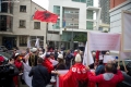 Citizens with Albanian flags and banners protesting in front of the Serbian Embassy in Tirana regarding the situation created in the north of Kosovo, where Serbian citizens have blocked the roads as a result of the arrest of a former Serbian officer. Albanian citizens have appealed for a solution to the situation.