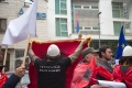 PROTESTS CONTINUE FOR THE SITUATION IN KOSOVO - Citizens with Albanian flags and banners protesting in front of the Serbian Embassy in Tirana regarding the situation created in the north of Kosovo, where Serbian citizens have blocked the roads as a result of the arrest of a former Serbian officer. Albanian citizens have appealed for a solution to the situation.