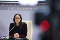 IBRAHIMAJ SPEAKS ABOUT THE ECONOMIC SITUATION - Minister of Finance and Economy, Delina Ibrahimaj speaking during a press conference. During the conference, Ibrahimaj focused on economic growth, sectors that have influenced growth and other issues.