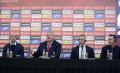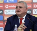 AFF President Armand Duka speaking during the ceremony of presentation of Brazilian Sylvio Mendes Canpos Junior (Sylvinho)as the new coach of the National Football Team of Albania, while Guidoni and Zabaleta will be assistant coaches. Sylvinho replaces the Italian Edoardo Reja and has signed an 18-month contract.