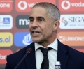 Brazilian Sylvio Mendes Canpos Junior (Sylvinho) speaking during the ceremony of his presentation as the new coach of the National Football Team of Albania, while Guidoni and Zabaleta will be assistant coaches. Sylvinho replaces the Italian Edoardo Reja and has signed an 18-month contract.