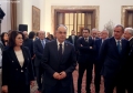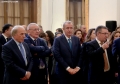 Prec Zogaj, Ylli Rakipi, Aleksander Frangaj dhe Luan Rama during the reception of the President of the Republic, Bajram Begaj with the journalists on the occasion of the new year 2023. He called on the media to stand up at the level of their mission, asking them not to abuse the media space for narrow interests.