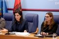 The Minister of Education and Sports, Evis Kushi and the Minister of State for Youth and Children, Bora Muzhaqi during a press conference where they talked about the achievements of education in 2022 and the objectives in 2023. Kushi said that now the students will to have the right to get the paper, and even have the chance to get their high school graduation test re-checked in case there are objections or claims for wrong grades.