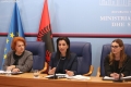 KUSHI AND MUZHAQI CONFERENCE - The Minister of Education and Sports, Evis Kushi and the Minister of State for Youth and Children, Bora Muzhaqi during a press conference where they talked about the achievements of education in 2022 and the objectives in 2023. Kushi said that now the students will to have the right to get the paper, and even have the chance to get their high school graduation test re-checked in case there are objections or claims for wrong grades.