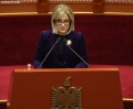 The speaker of the parliament, Lindita Nikolla, speaking during a parliamentary session, which marked the start of parliamentary work for this year.