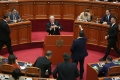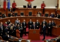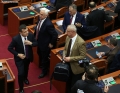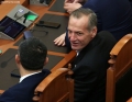 The chairman of the Democratic Party, Sali Bersiha and MP Flamur Noka and Belind Kellici in a moment of tension during a parliamentary session, which marked the start of parliamentary work for this year.