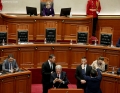 MPs Nasip Naco and Arben Pellumbi and the chairman of the SP parliamentary group, Taulant Balla during a parliamentary session, which marked the start of parliamentary work for this year.