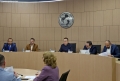 The members of the Appeals and Sanctions Commission in the CEC, Elvin Lako, Elvis Cefa, Ilirjan Rusmali, Koli Bebe and Ledio Braho during a meeting of this commission, where some parties have expressed their opposition to the proposal of the State Election Commissioner to impose administrative sanctions, after findings from the audit of funds received and spent by political parties participating in the 2021 elections.