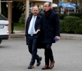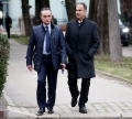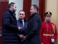 MPs Xhelal Mziu and Dashnor Sula entering a parliamentary session, which marked the start of the parliamentary works for this year.