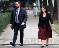 MPs Ornaldo Rakipi and the Minister of Education and Sports, Evis Kushi entering a parliamentary session, which marked the start of the parliamentary works for this year.