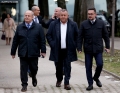 MPs Erion Brace, Vullnet Sinaj and Saimir Hasalla entering a parliamentary session, which marked the start of the parliamentary works for this year.