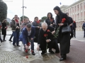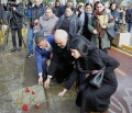Prime Minister Edi Rama and family members of the victims place carnations in at the murder scene during the tributes organized by the government in the main boulevard, in honor of the four victims who lost their lives 10 years ago in the violent demonstration of January 21, 2011.