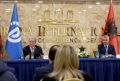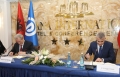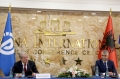The chairman of the Democratic Party, Sali Berisha, entering signing ceremony for the coalition agreement for the May 14 local elections with the chairman of PBDNJ, Vangjel Dule for the candidates in the municipalities of Himara, Dropulli and Finiq. Fredi Bejleri will be a candidate in the Municipality of Himare, Thanas Maneka for Dropulli, while for Finiq the current mayor, Leonidha Kristo will be the candidate.
