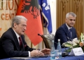 The chairman of the Democratic Party, Sali Berisha, and the chairman of PBDNJ, Vangjel Dule before the signing of the coalition agreement for the local elections on May 14 for the candidates in the municipalities of Himara, Dropulli and Finiq. Fredi Bejleri will be a candidate in the Municipality of Himare, Thanas Maneka for Dropulli, while for Finiq the current mayor, Leonidha Kristo will be the candidate.