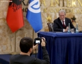 The chairman of PBDNJ, Vangjel Dule speaking after the signing of the coalition agreement with the chairman of the Democratic Party, Sali Berisha for the May 14 local elections with the chairman of PBDNJ, Vangjel Dule for the candidates in the municipalities of Himara, Dropulli and Finiq. Fredi Bejleri will be a candidate in the Municipality of Himare, Thanas Maneka for Dropulli, while for Finiq the current mayor, Leonidha Kristo will be the candidate.