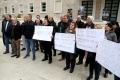 PROTESTS OF RESIDENTS OF BERXULL - Residents of Berxull protesting with banners in their hands in front of the prime minister's office. The protesters express their revolt against the Thumane-Kashar concession that affects their lands. Their requests are to divert the project, for the expropriation to occur at market value and to have a secondary road with overpasses and bypasses.