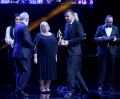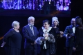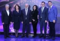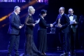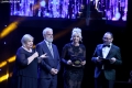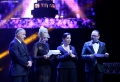 Speaker of the Parliament of North Macedonia, Talat Xhaferri, Minister of State for Services and Standards and presenters Ornela Gace and Erion Kristo during the awards ceremony for businesses, CCIT Awards 2023, in a gala evening organized by the National Chamber of Commerce and Industry.
