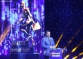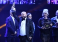 Minister Evis Kushi and presenters Erion Kristo and Ornela Gace during the awards ceremony for businesses, CCIT Awards 2023, in a gala evening organized by the National Chamber of Commerce and Industry.