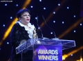 Fitnete Sula of Intersig speaking after receiving an award during the awards ceremony for businesses, CCIT Awards 2023, in a gala evening organized by the National Chamber of Commerce and Industry.