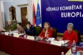 The head of the EU delegation in Tirana, the ambassador, Christiane Hohmann, the chief negotiator for the integration of Albania in the EU, Majlinda Dhuka, the chairman of the SP parliamentary group, Taulant Balla, the chairman of the national council of European integration, Jorida Tabaku and the reporter for Albania in the European Parliament, Isabel Santos in a meeting of this council where they talked about the negotiation process with the European Union (EU) and the perspective of Albania's membership in the EU.