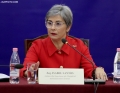 Reporter for Albania in the European Parliament, Isabel Santos speaking in a meeting of the national council of European integration where they talked about the negotiation process with the European Union (EU) and the perspective of Albania's membership in the EU.