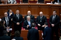 Head of the democratic party, Sali Berisha speaking in a moment of tension during a parliamentary session, in which the victims of the Holocaust were remembered, while there were many debates related to the McGonigal case.