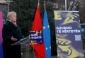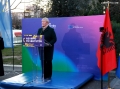 The head of the EU delegation in Tirana, the ambassador, Christiane Hohmann speaking at the press conference about the tunnel Follow the Truth, an art installation part of the campaign of the Delegation of the European Union in Tirana in the fight against misinformation and fake news. Through it, journalists and social media users in particular are called upon to follow and correct the information.