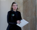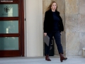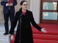 The Minister of Culture, Elva Margariti exiting the prime minister's office, after a government meeting.
