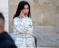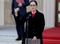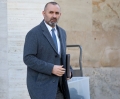 The Minister of Sports and Education, Evis Kushi exiting the prime minister's office, after a government meeting.