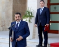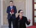 Minister of Defense, Niko Peleshi and Minister of Finance and Economy, Delina Ibrahimaj speaking in front of the Prime Minister's office, after a government meeting, regarding the approved decisions.
