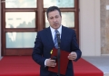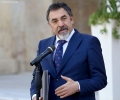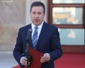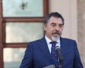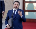Minister of Defense, Niko Peleshi speaking in front of the Prime Minister's office, after a government meeting, regarding the approved decisions.