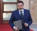 Minister of Interior, Bledar Cuci speaking in front of the Prime Minister's office, after a government meeting, regarding the approved decisions.