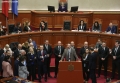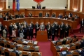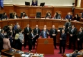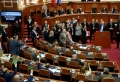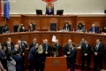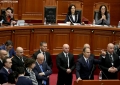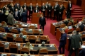 Majority MPs voting during a parliamentary session, where the opposition MPs requested an interpellation with Prime Minister Edi Rama regarding the McGonigal case, insisting that they would not continue the session if it was not carried out.